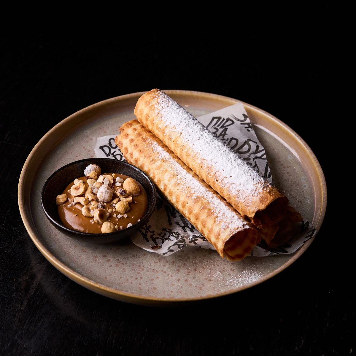 Crunchy tubes made from butter, milk, flour, and cane sugar.…