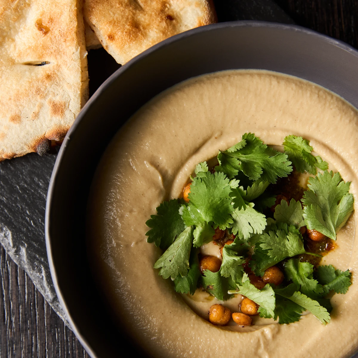 chickpea paste, olive oil with chimichurri, cilantro. Served with focaccia