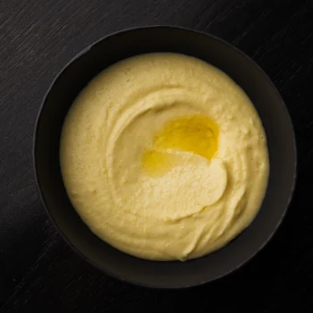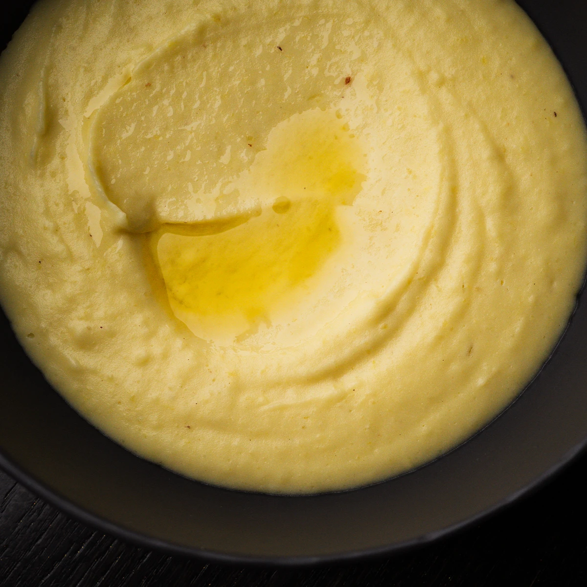 Mashed boiled potatoes with milk, parmesan, nutmeg and herbal butter