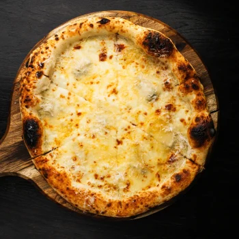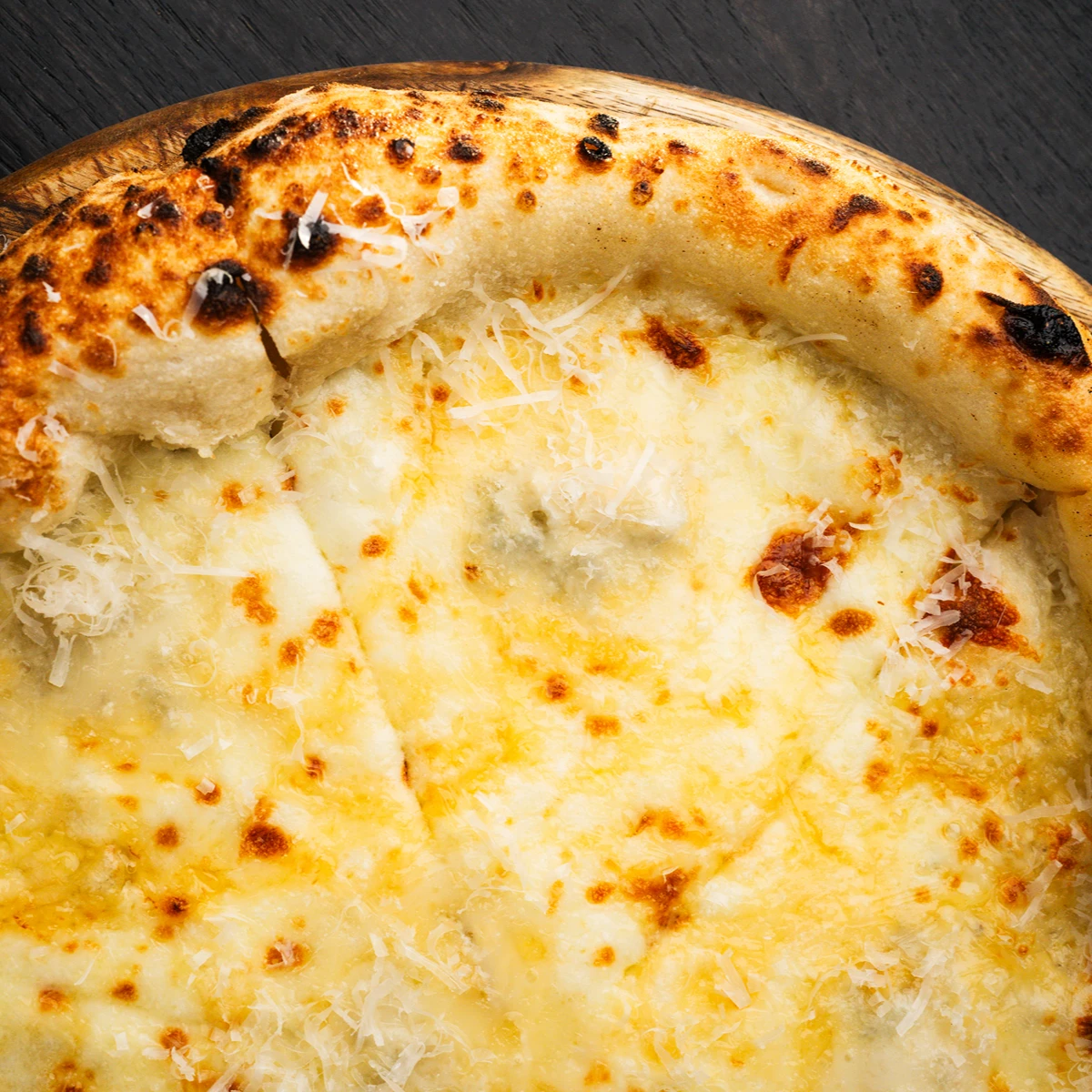cream sauce, mozzarella cheese, gorgonzola cheese, emmental cheese and parmesan cheese