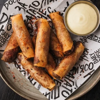 Pastrami, rice paper, caramelized sauerkraut, onion, garlic, mozzarella Served with French sauce