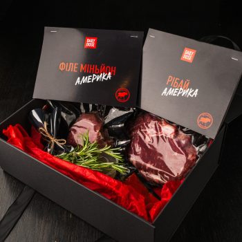 Це не просто шматки м'яса, це обіцянка неперевершеної вечері, що запам'ятається надовго.Щоб розкрити їхній повний потенціал, ми додаємо: мальдонську сіль, перець, зелене масло, розмарин та тим'ян. Рібай Black Angus - багато жирових прошарків тануть під час смаження, роблячи його неймовірно соковитим і ароматним. Волога витримка 14-21 день робить його винятково ніжним, повністю розкриваючи смак. Філе Міньйон Black Angus - це м'ясо тане в роті, залишаючи вишуканий смак. Його оксамитова текстура робить кожен шматочок незабутнім. Волога витримка (14-21 день) робить його ідеально ніжним і повністю розкриває смак.