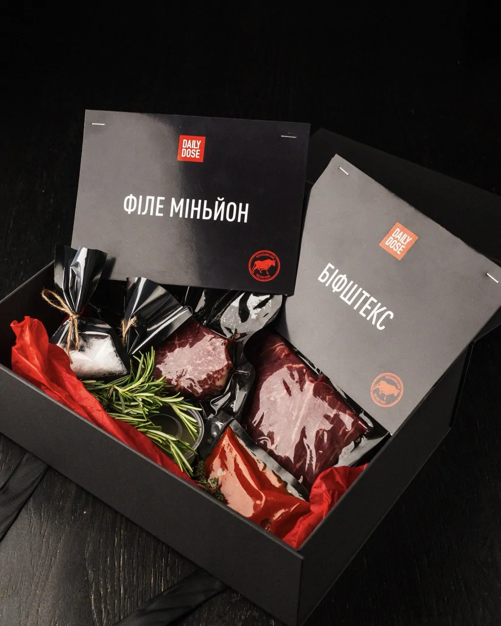 Today's dose consists of five simple ingredients that will transform your dish into something special. Ingredients: filet mignon, beefsteak, Maldon salt, pepper, thyme, rosemary, green butter.