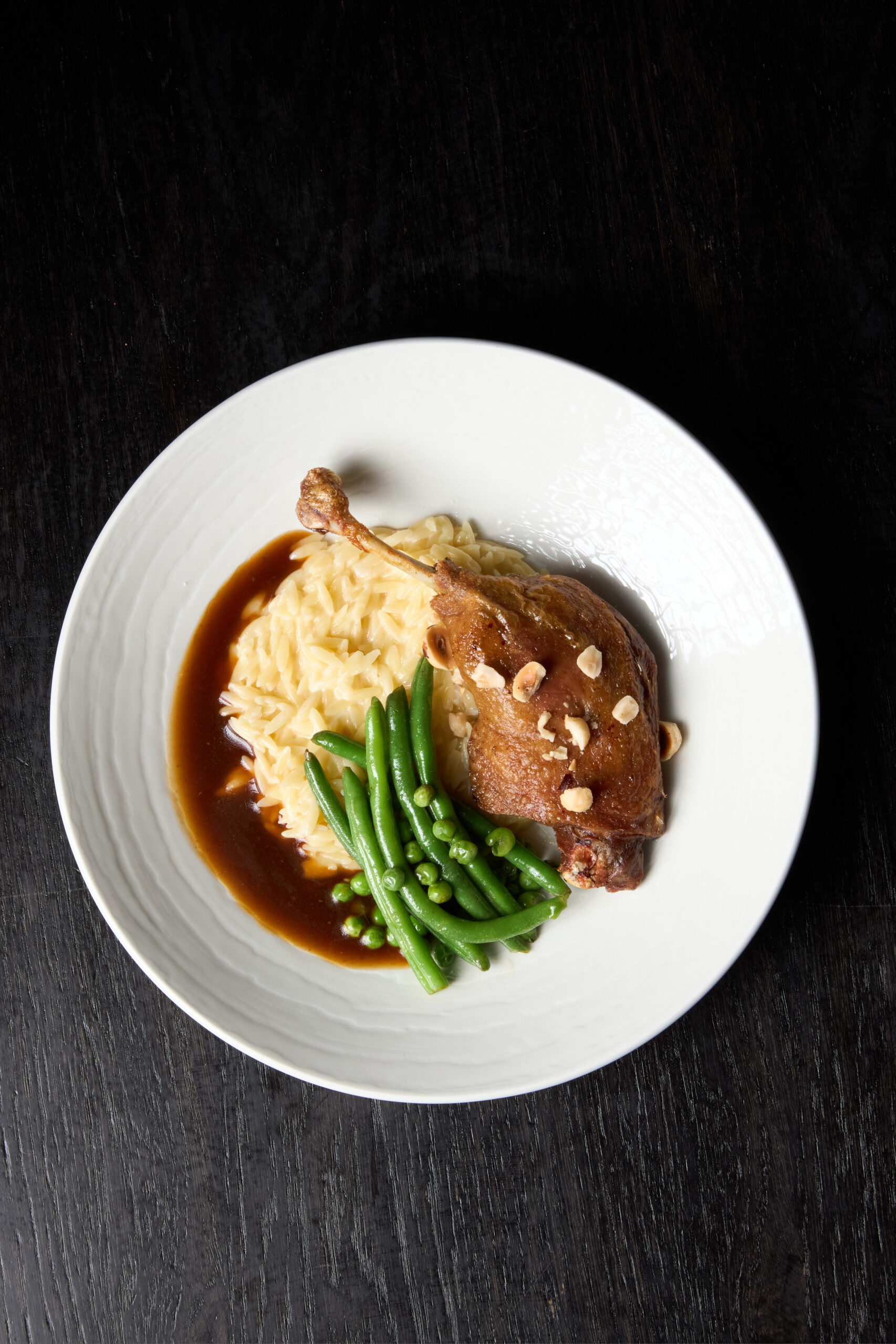 Confit duck leg in orange glaze, orzo, Parmesan cheese, mascarpone,…