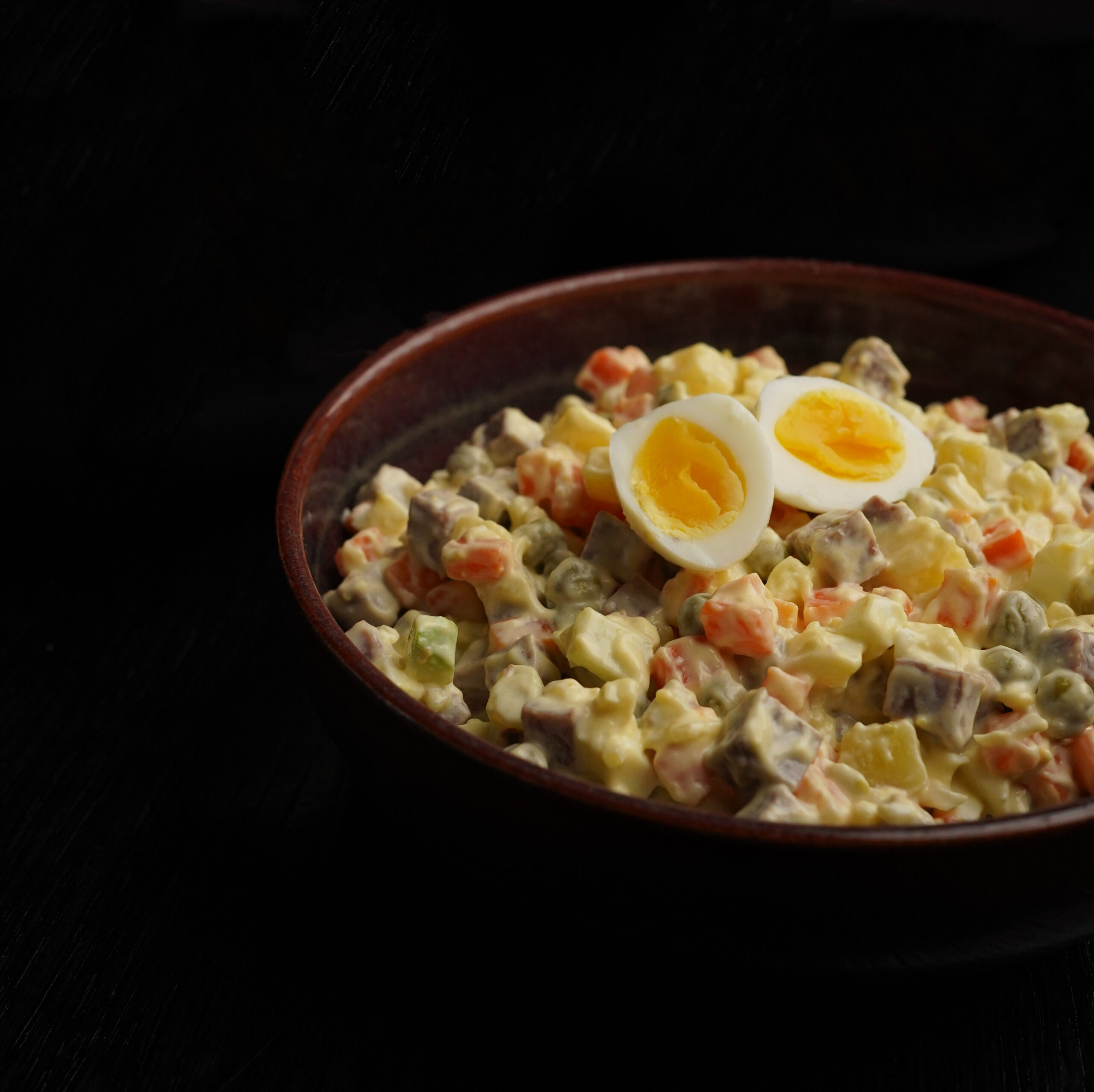 Veal tongue, carrots, peas, egg, potatoes, aioli.
