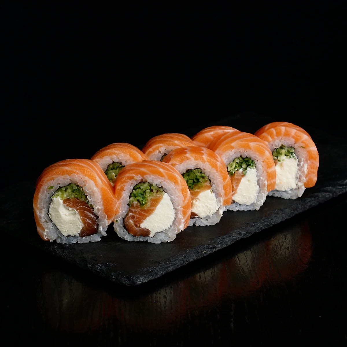 salmon (x2), Philadelphia cheese, cucumber, cream cheese