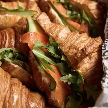 Міні-круасани з ніжною начинкою — класика для легкого фуршету. Ідеально під каву, вино чи для ранкового кейтерингу.