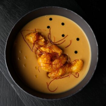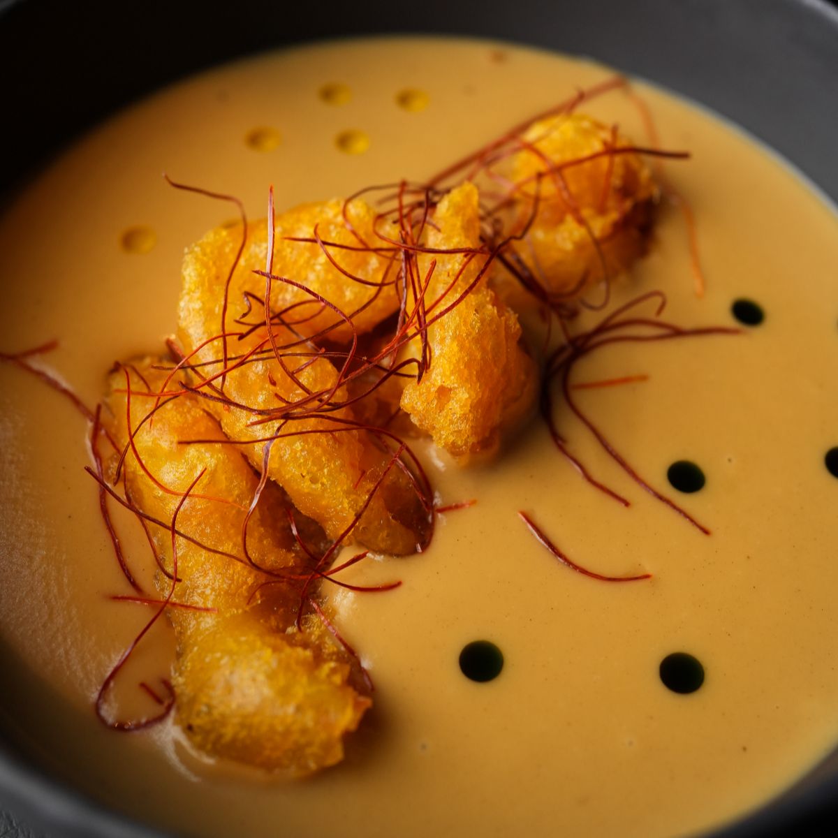 Крем-суп із цвітної капусти з хрусткою креветкою